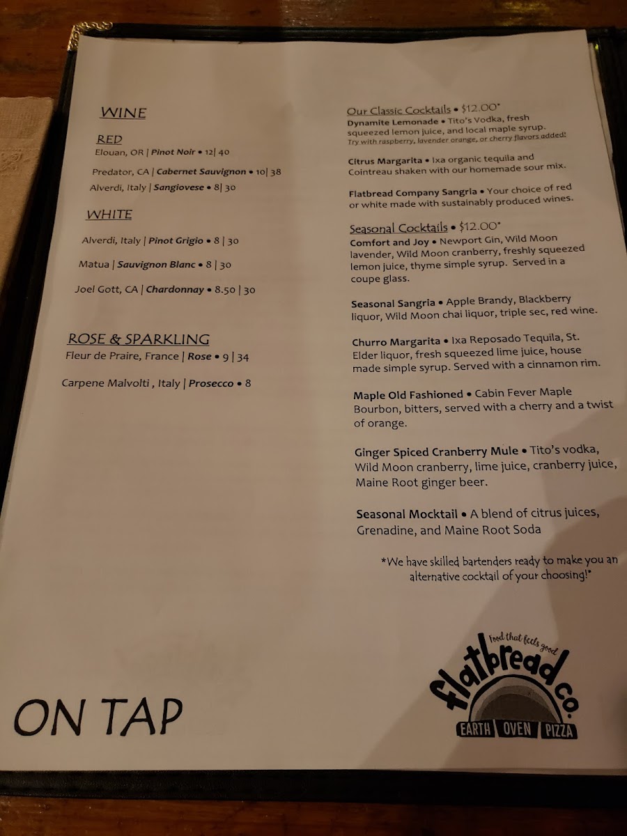 Don’t miss out on the variety of dipping sides like homemade ranch and Mopsy BBQ sauce, priced at an approachable $1.50 each. To sweeten your experience, indulge in the Wild Blueberry Crisp or the decadent Brownie Sundae, both warmed to perfection. Overall, the Flatbread Company invites you to savor each bite in a vibrant and welcoming atmosphere.